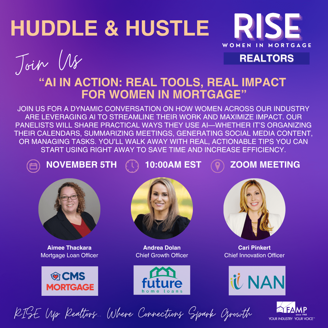 - Description: “Join us for a dynamic conversation on how women across our industry are leveraging AI to streamline their work and maximize impact. ” Speakers: Aimee Thackera, Andrea Dolan, and Cari Pinkert.